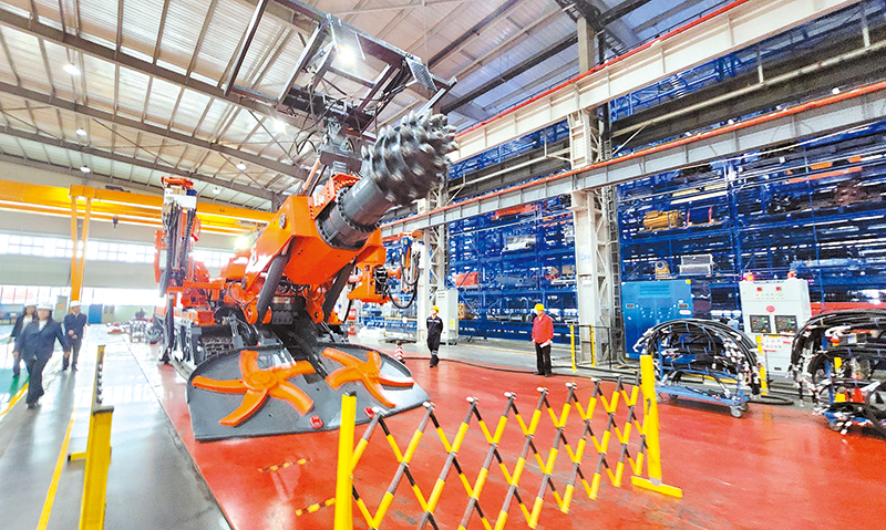山西美佳礦業裝備有限公司生產車間內工人們正在安裝調試掘進設備
